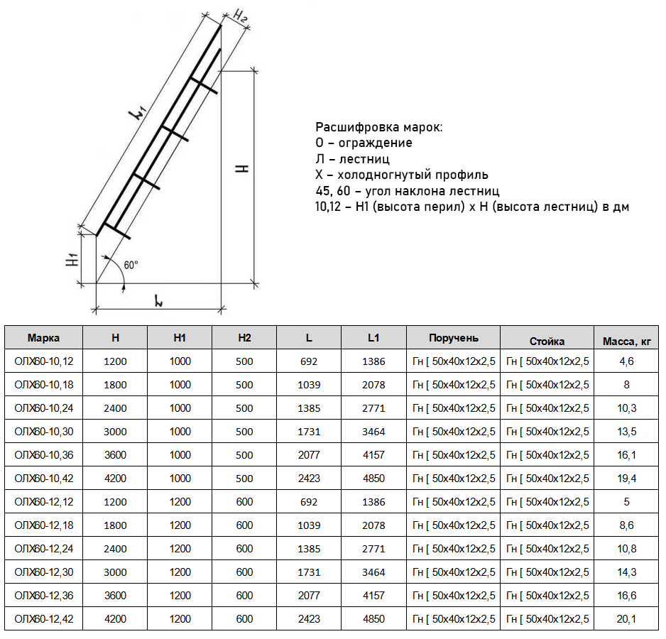 Ограждение лестниц ОЛХ 60-12.42 Серия 1.450.3-7.94