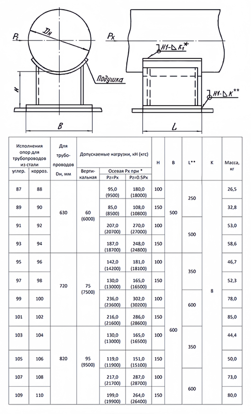 Опора 102 Ду 720 ОСТ 34-10-616-93 H 150 приварная скользящая неподвижная коррозионностойкая сталь