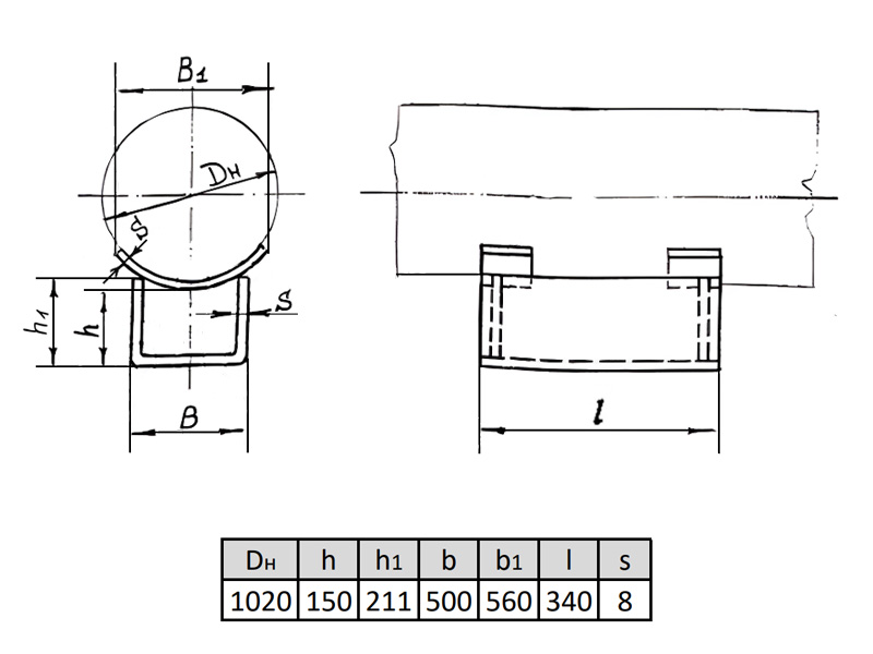 Опора 1020-КП-Б22 Ду 1020 мм корпусная хомутовая ОСТ 36-146-88 неподвижная