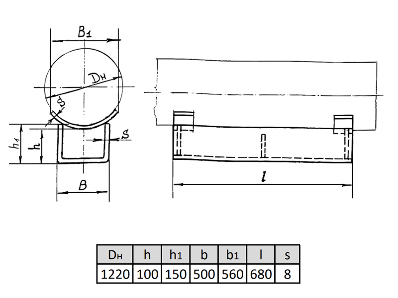 Опора 1220-КП-Б13 Ду 1220 мм корпусная хомутовая ОСТ 36-146-88 неподвижная