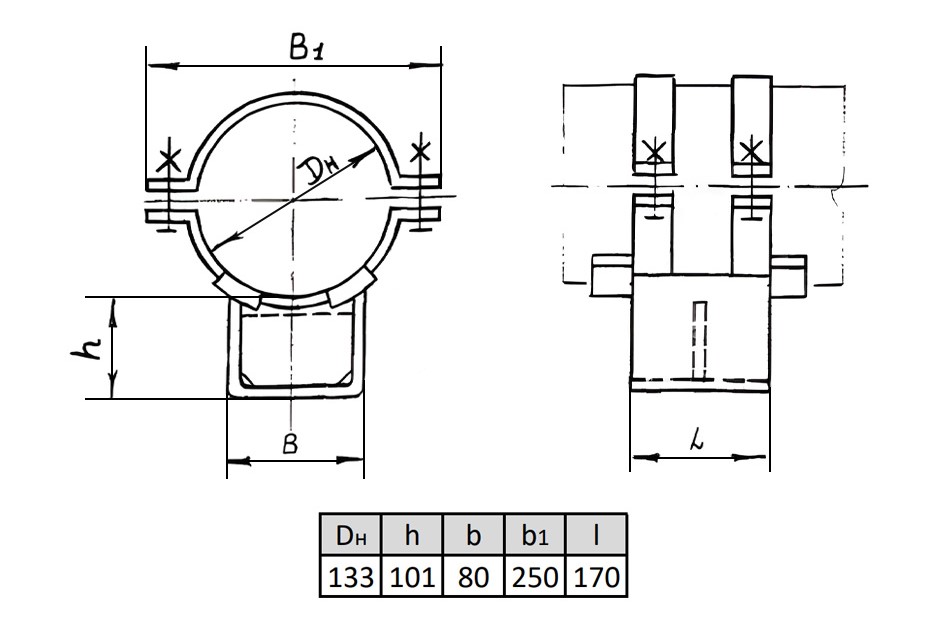 Вид опорыКорпусная хомутовая