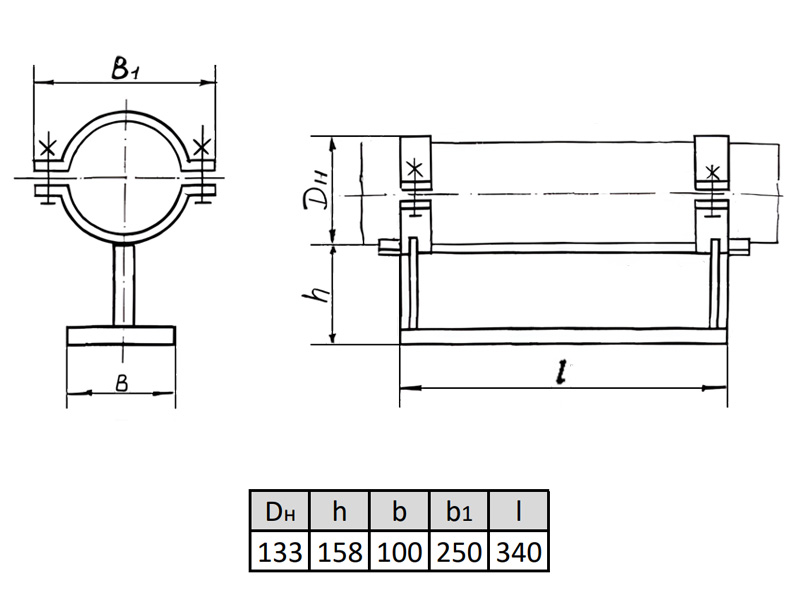 Опора 133-ТХ-БС22 Ду 133 мм ОСТ 36-146-88 неподвижная