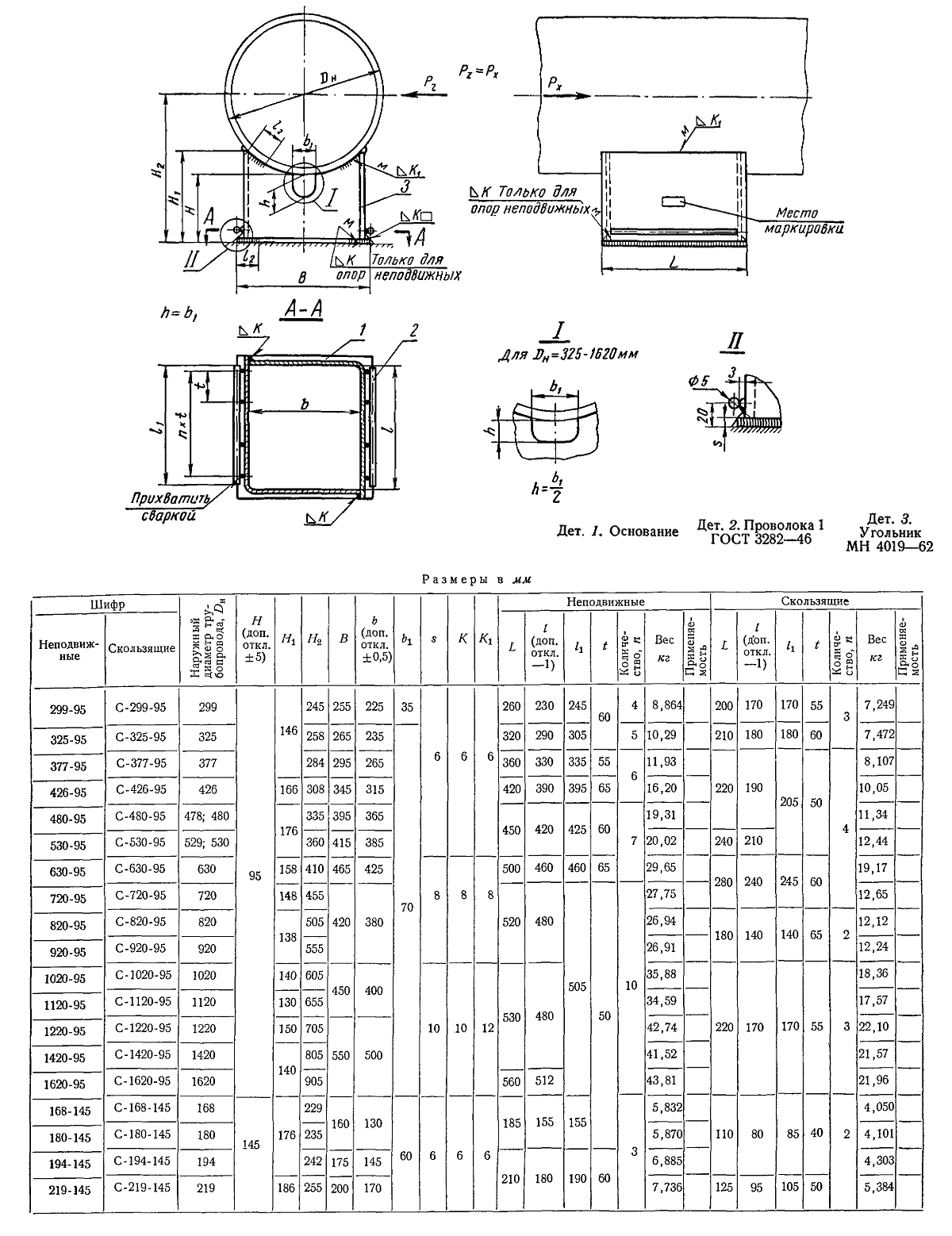 Опора 1420-95 МН 4008-62 приварная неподвижная