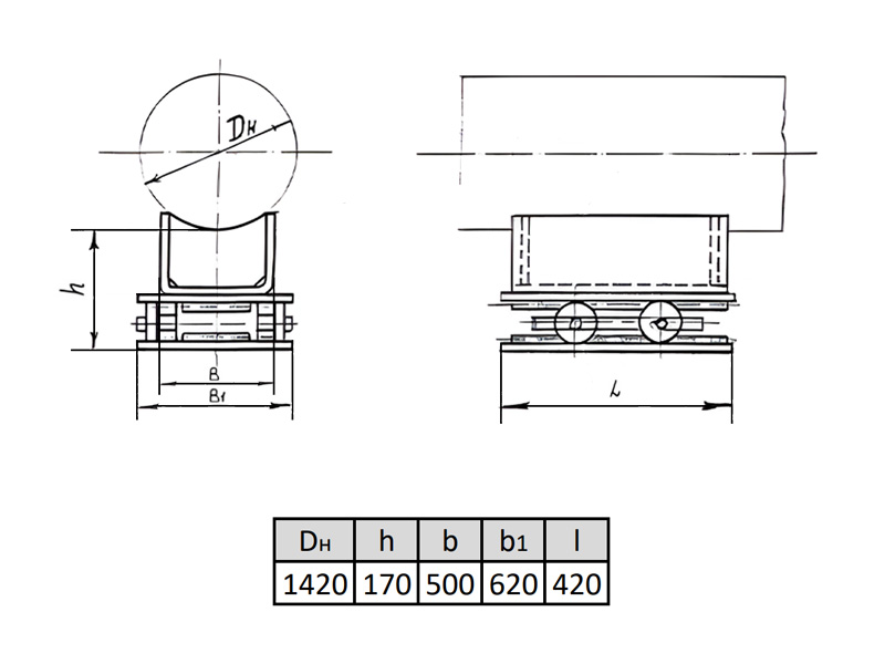 Опора 1420-КН-А12 Ду 1420 мм ОСТ 36-146-88 подвижная