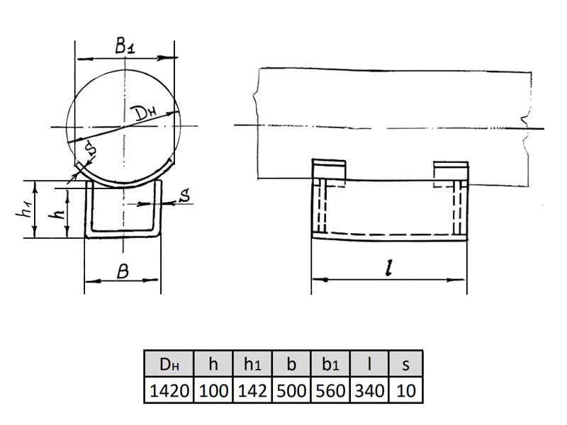 Опора 1420-КП-Б12 Ду 1420 мм корпусная хомутовая ОСТ 36-146-88 неподвижная