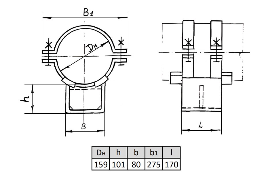 Вид опорыКорпусная хомутовая