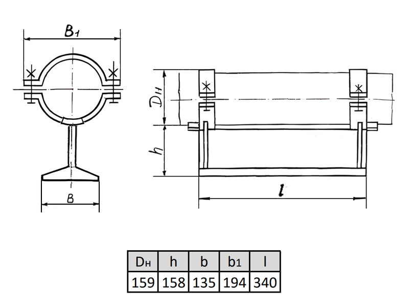 Опора 159-ТХ-Б22 Ду 159 мм ОСТ 36-146-88 неподвижная