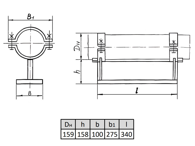 Опора 159-ТХ-БС22 Ду 159 мм ОСТ 36-146-88 неподвижная