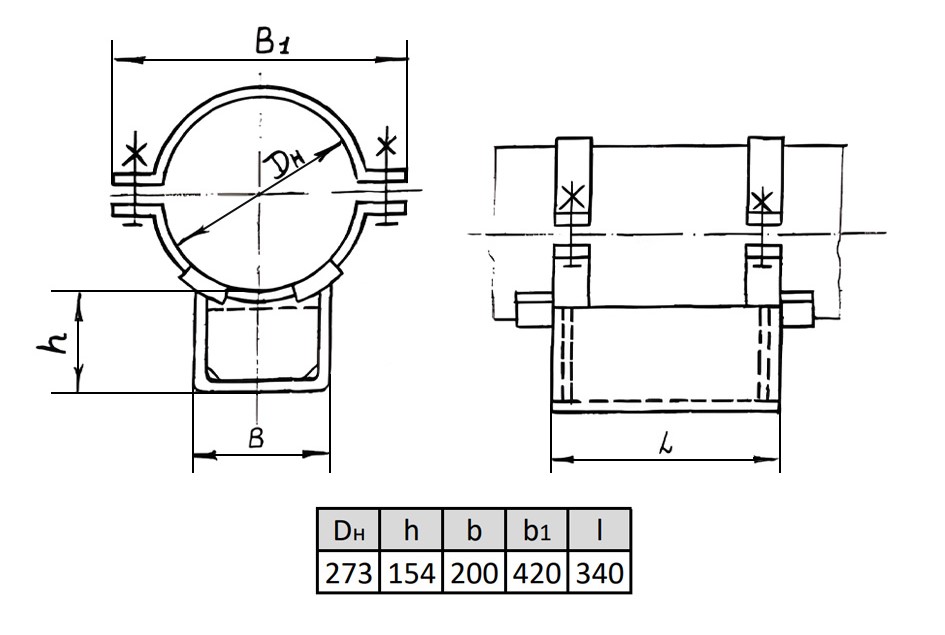 Опора 273-КХ-А22 Ду 273 мм ОСТ 36-146-88 неподвижная