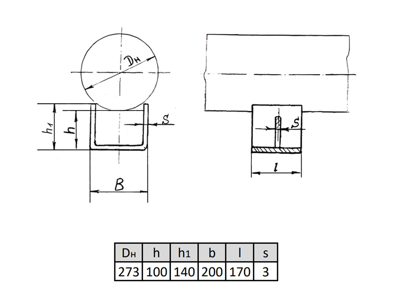 Опора 273-КП-А11 Ду 273 мм корпусная хомутовая ОСТ 36-146-88 подвижная