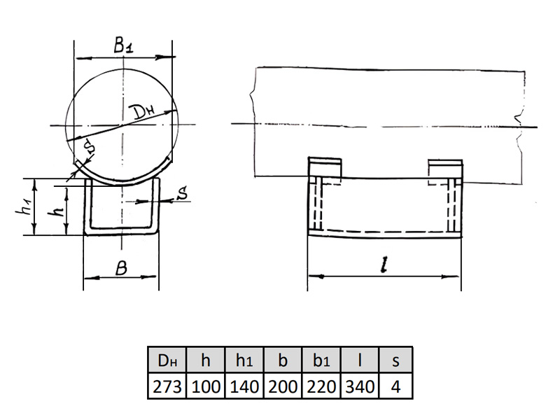 Опора 273-КП-Б12 Ду 273 мм корпусная хомутовая ОСТ 36-146-88 подвижная