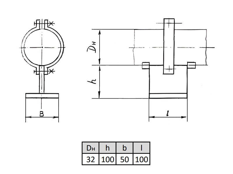 Опора 32-ТХ-АС10 Ду 32 мм ОСТ 36-146-88 неподвижная