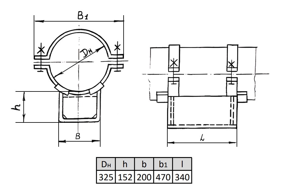Опора 325-КХ-А22 Ду 325 мм ОСТ 36-146-88 неподвижная