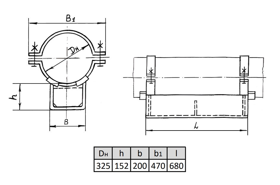Опора 325-КХ-А23 Ду 325 мм ОСТ 36-146-88 неподвижная
