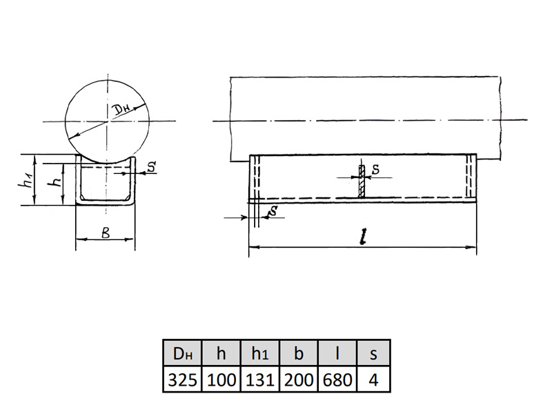 Опора 325-КП-А13 Ду 325 мм корпусная хомутовая ОСТ 36-146-88 подвижная