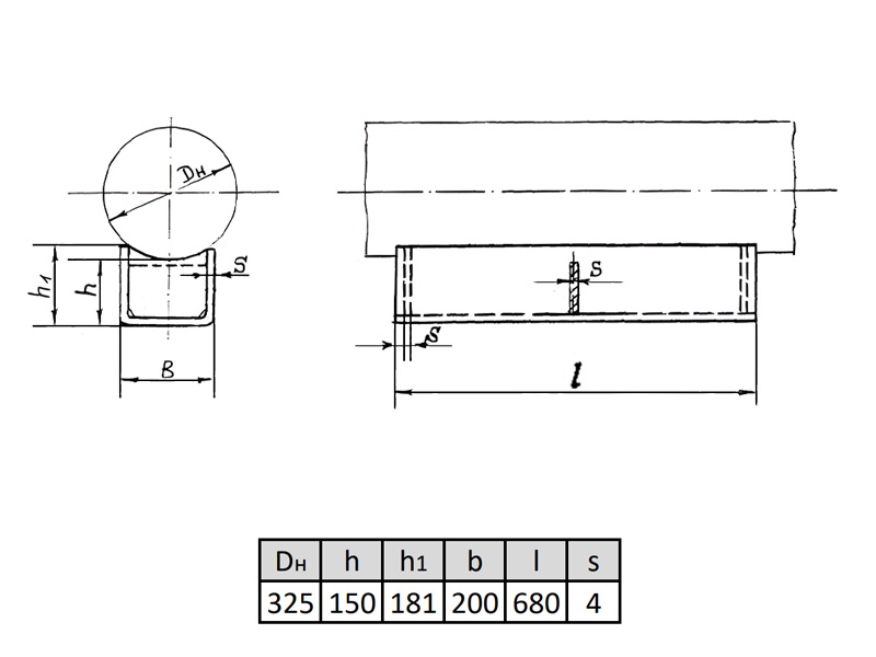 Опора 325-КП-А23 Ду 325 мм корпусная хомутовая ОСТ 36-146-88 подвижная