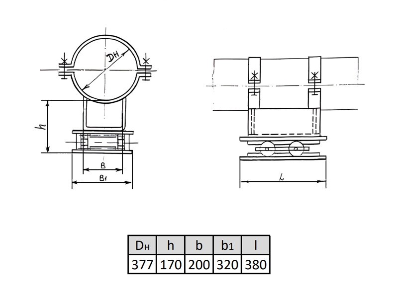 Опора 377-КН-Х12 Ду 377 мм ОСТ 36-146-88 подвижная
