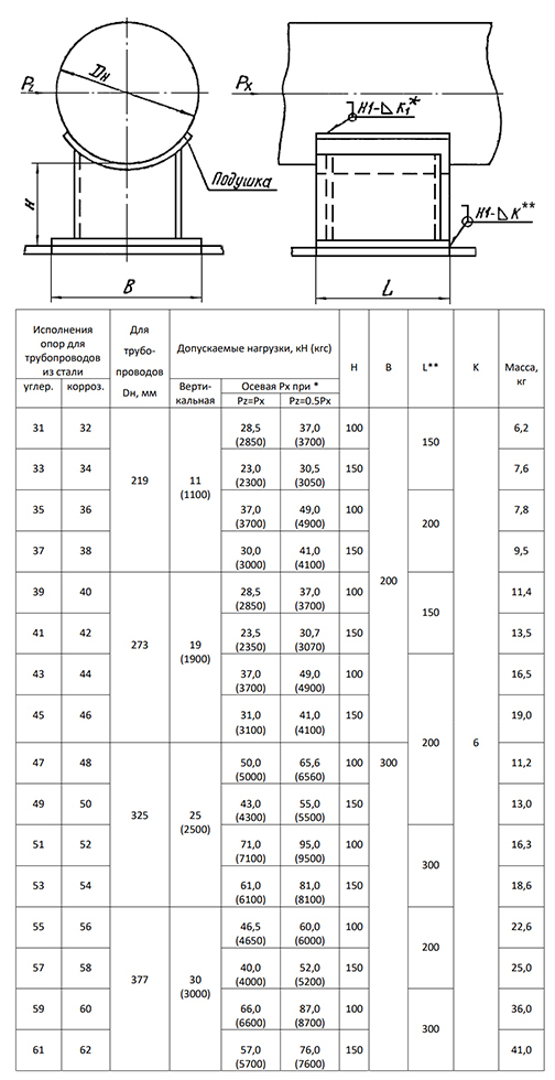 Опора 39 Ду 273 ОСТ 34-10-616-93 H 100 приварная скользящая неподвижная углеродистая сталь