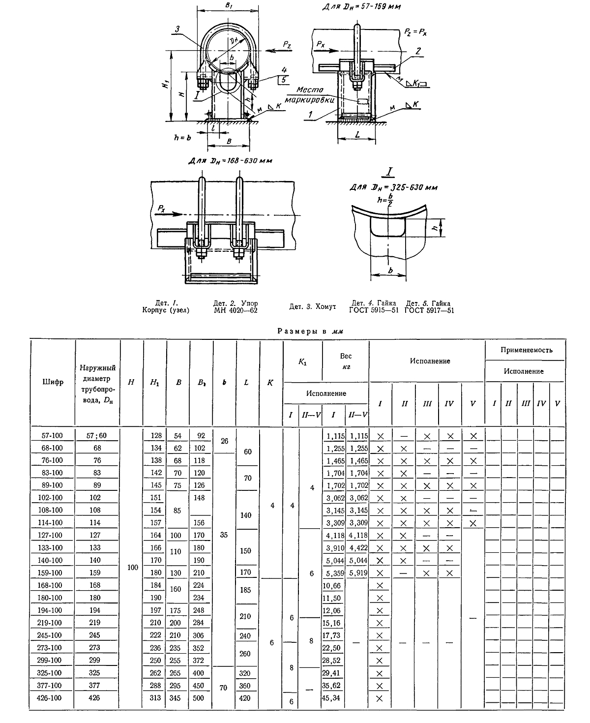 Опора 4-57-100 МН 4010-62 хомутовая неподвижная