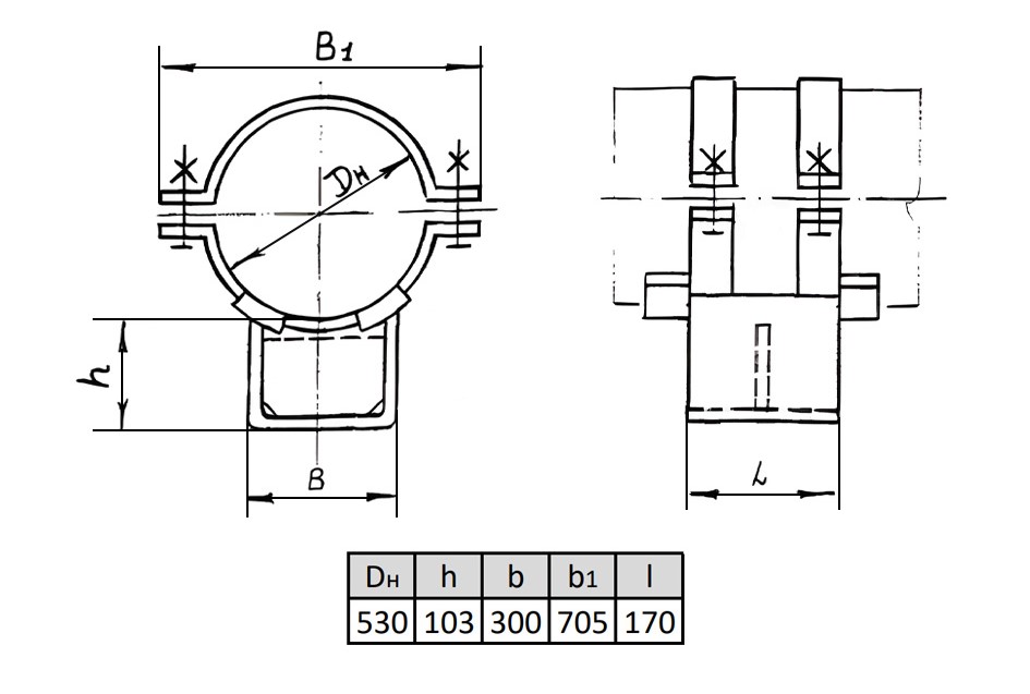 Опора 530-КХ-А11 Ду 530 мм ОСТ 36-146-88 подвижная