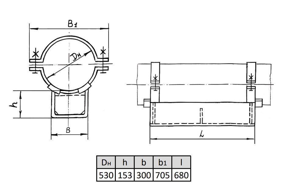 Опора 530-КХ-А23 Ду 530 мм ОСТ 36-146-88 неподвижная