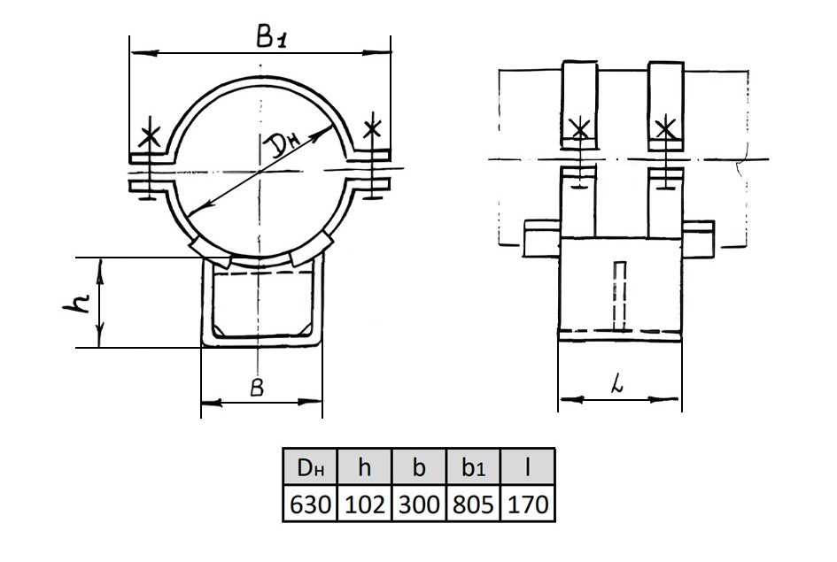 Опора 630-КХ-А11 Ду 630 мм ОСТ 36-146-88 подвижная