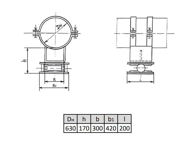 Опора 630-КН-Х11 Ду 630 мм ОСТ 36-146-88 подвижная