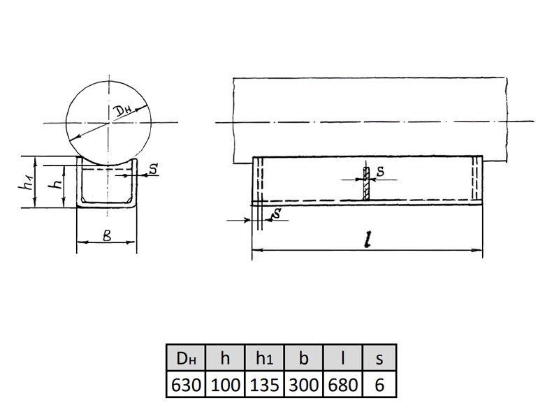 Опора 630-КП-А13 Ду 630 мм корпусная хомутовая ОСТ 36-146-88 неподвижная