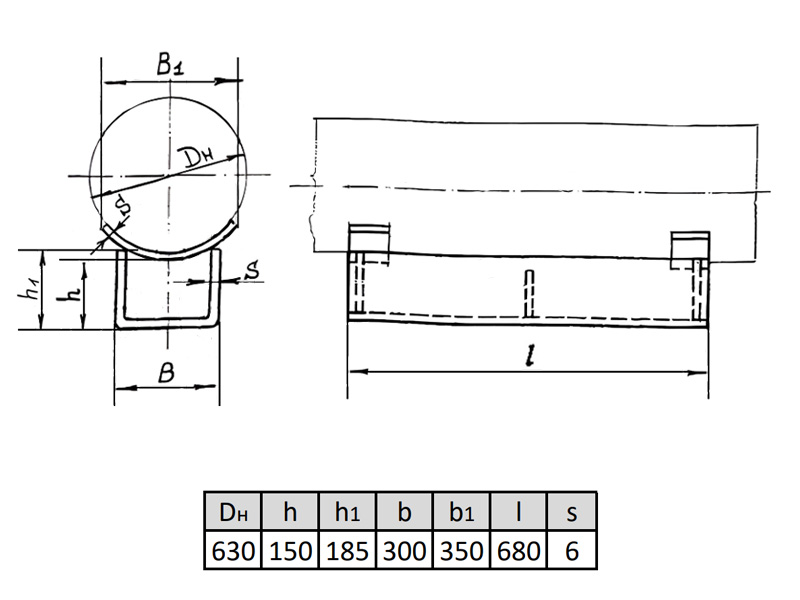 Опора 630-КП-Б23 Ду 630 мм корпусная хомутовая ОСТ 36-146-88 подвижная