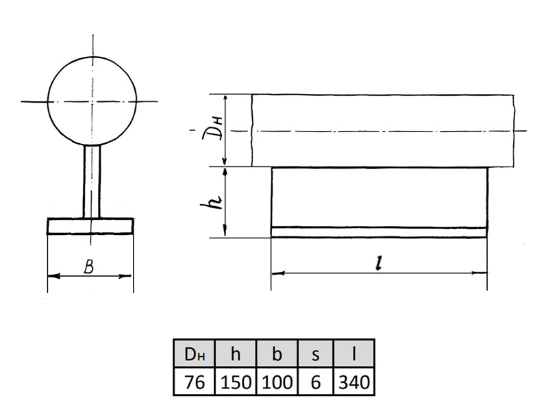 Опора 76-ТП-АС22 Ду 76 мм ОСТ 36-146-88 неподвижная