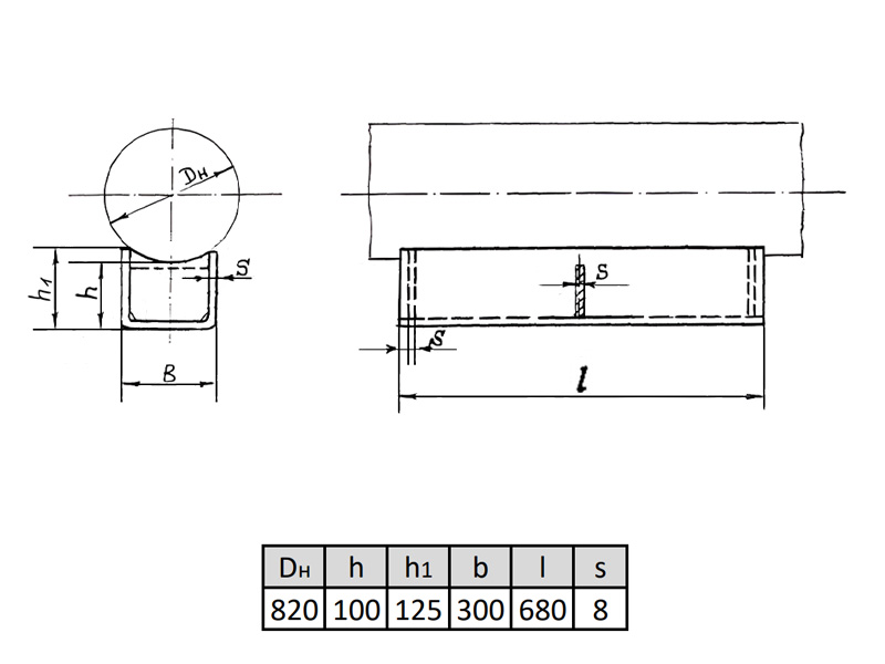 Опора 820-КП-А13 Ду 820 мм корпусная хомутовая ОСТ 36-146-88 подвижная