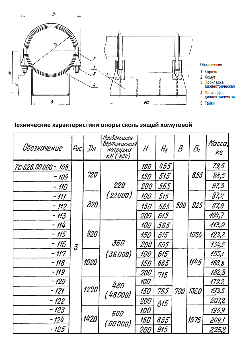 Опора Дн 1020 ТС 626.00.000-118 серия 5.903-13 выпуск 8.95 скользящая хомутовая