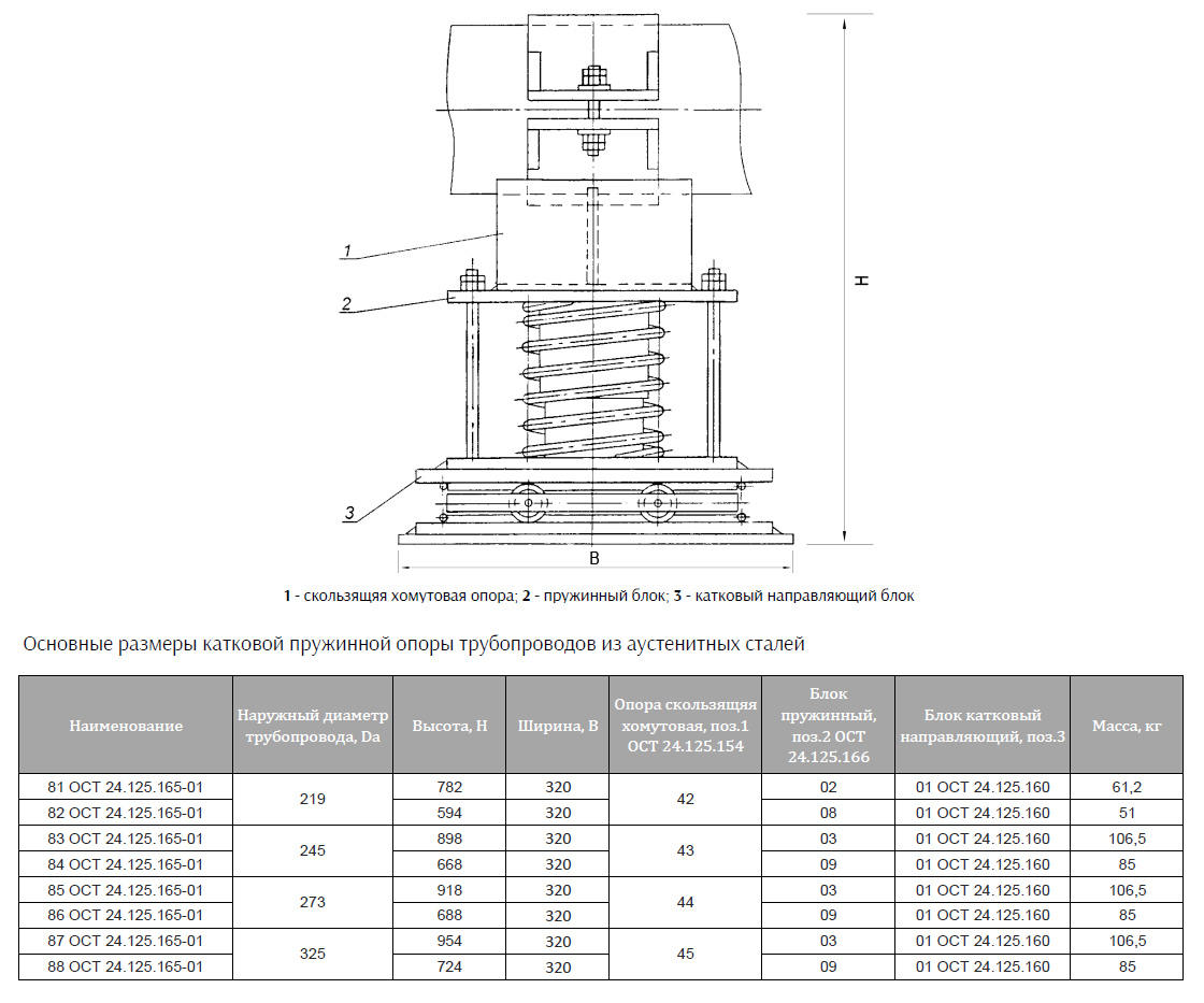 Опора Дн 219 82 ОСТ 24.125.165-01 катковая пружинная