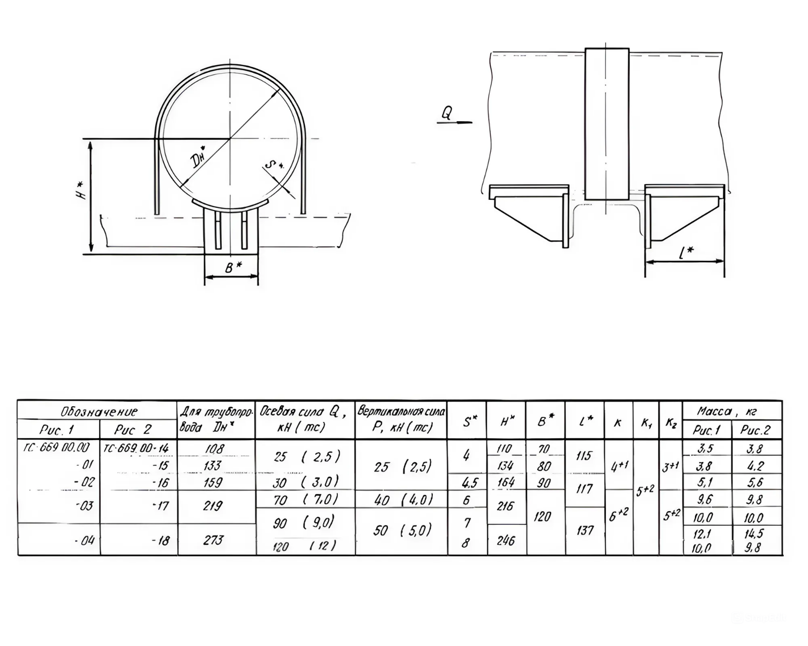 Опора Дн 219 ТС-669.00.00-03 серии 5.903-13 выпуск 7-95 неподвижная хомутовая