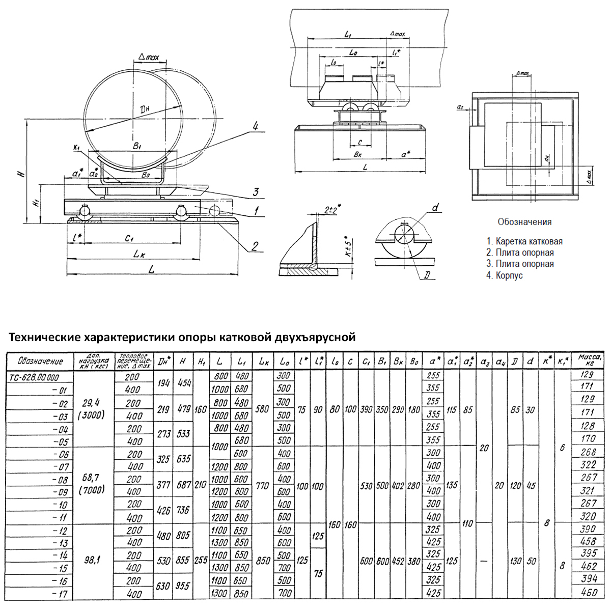 Опора Дн 273 ТС 628.00.000-005 серия 5.903-13 выпуск 8.95 катковая двухъярусная