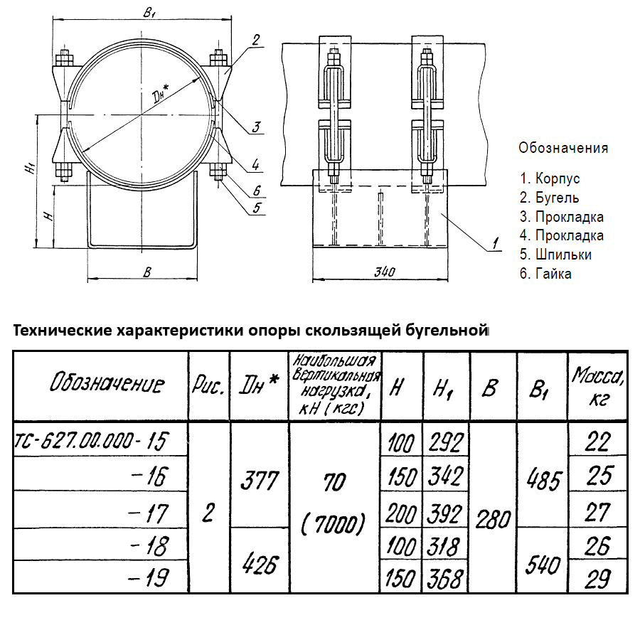 Опора Дн 377 ТС 627.00.000-016 серия 5.903-13 выпуск 8.95 скользящая бугельная