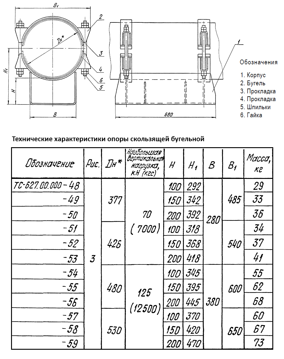 Опора Дн 377 ТС 627.00.000-048 серия 5.903-13 выпуск 8.95 скользящая бугельная