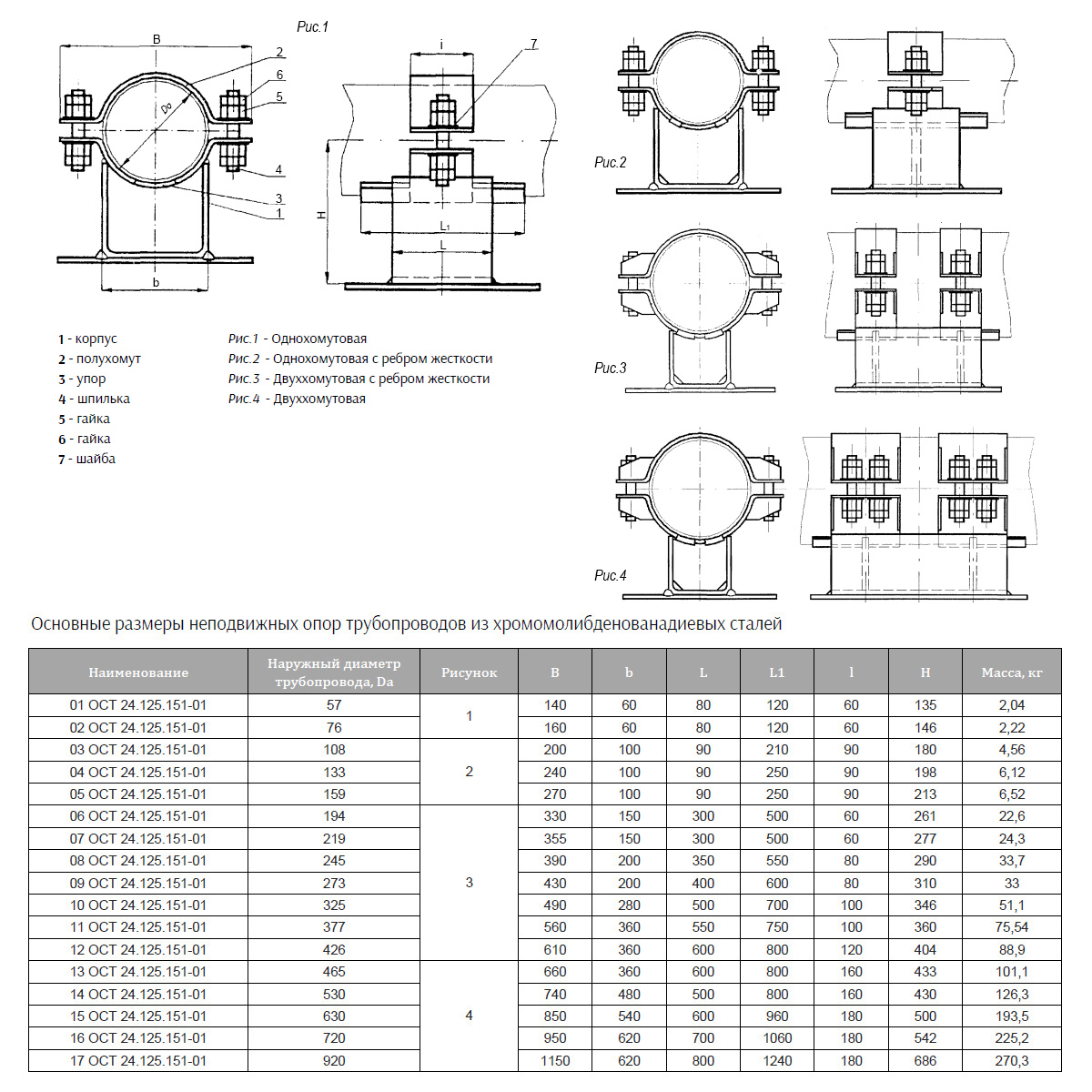 Опора Дн 57 01 ОСТ 24.125.151-01 неподвижная однохомутовая