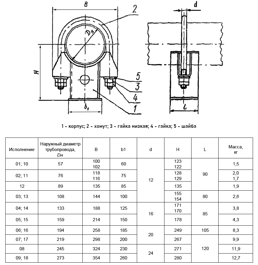 Опора Дн 57 10 ОСТ 108.275.29-80 скользящая однохомутовая кремнемарганцовистая сталь, ТЭС и АЭС