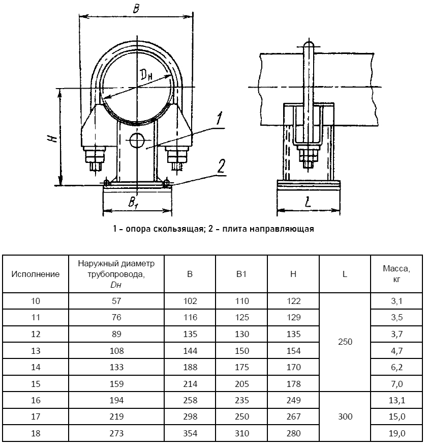 Опора Дн 57 10 ОСТ 108.275.33-80 скользящая направляющая однохомутовая кремнемарганцовистая сталь, ТЭС и АЭС