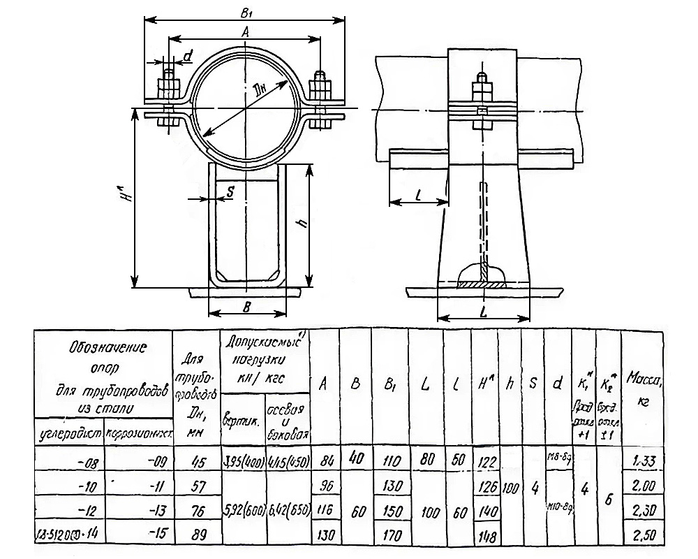 Сфера примененияКрепление стальных технологических трубопроводов