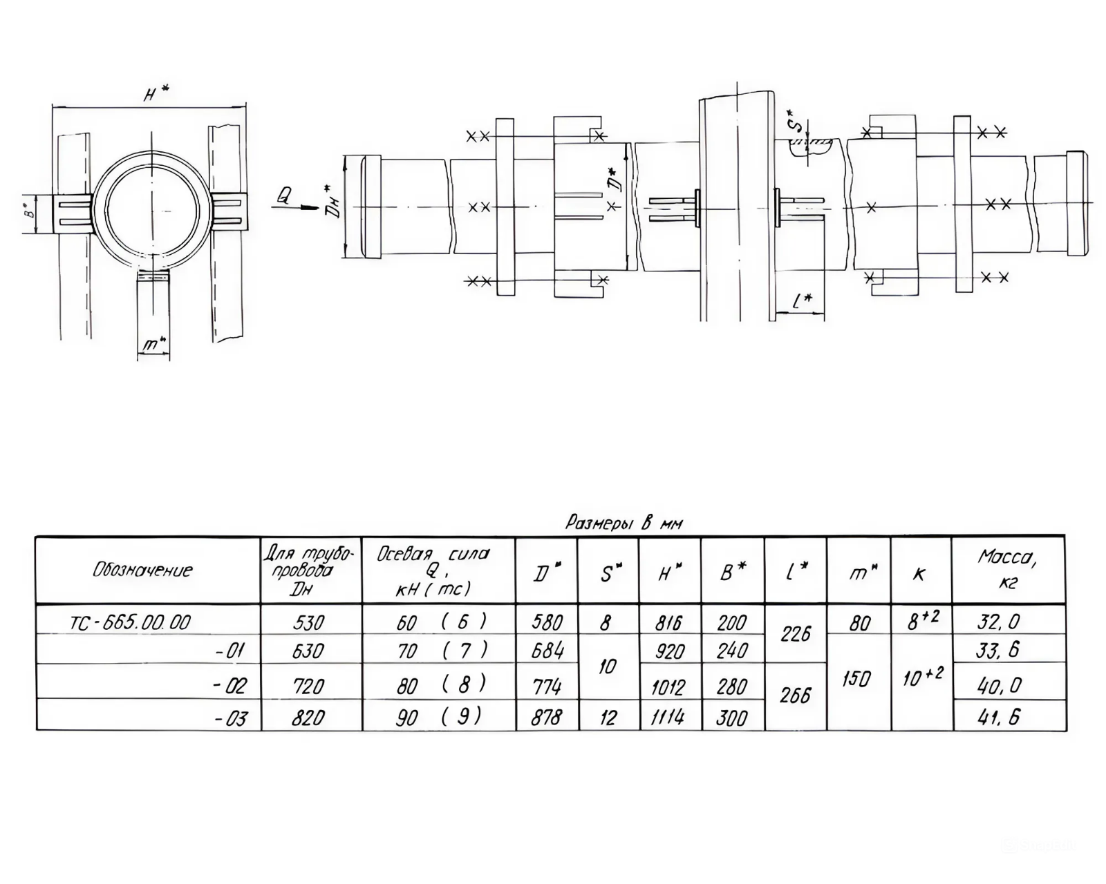 Опора Дн 630 ТС-665.00.00-01 серии 5.903-13 выпуск 7-95 неподвижная двухупорная