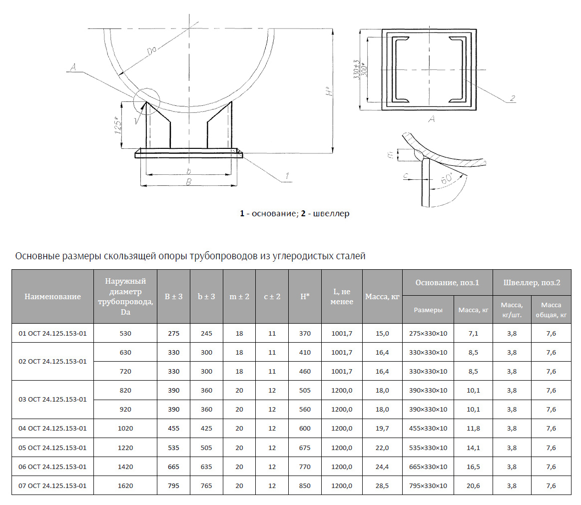 Опора Дн 720 02 ОСТ 24.125.153-01 скользящая приварная