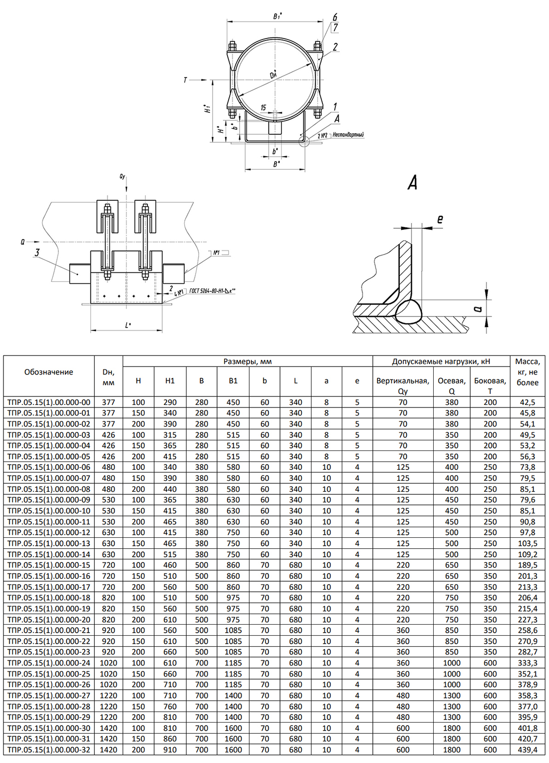 Опора Дн 720 ТПР.05.15(1).00.000-17 H=200 бугельная неподвижная стальная