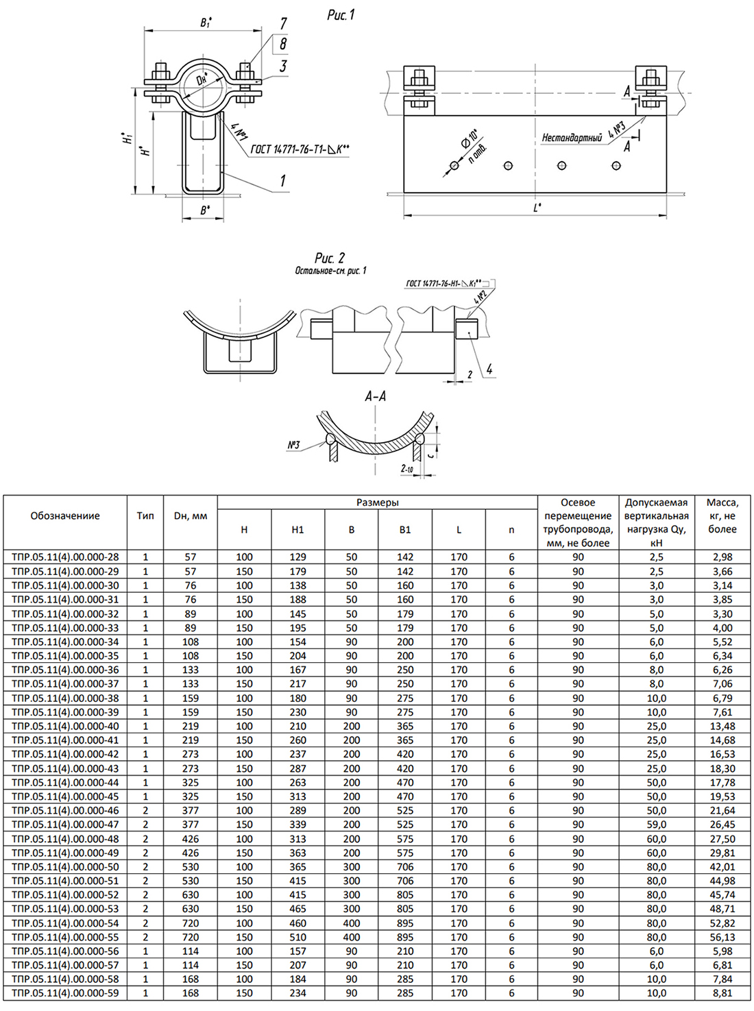 Опора Дн 76 ТПР.05.11(4).00.000-30 Тип-1 H=100 осевое перемещение 90 мм хомутовая подвижная стальная