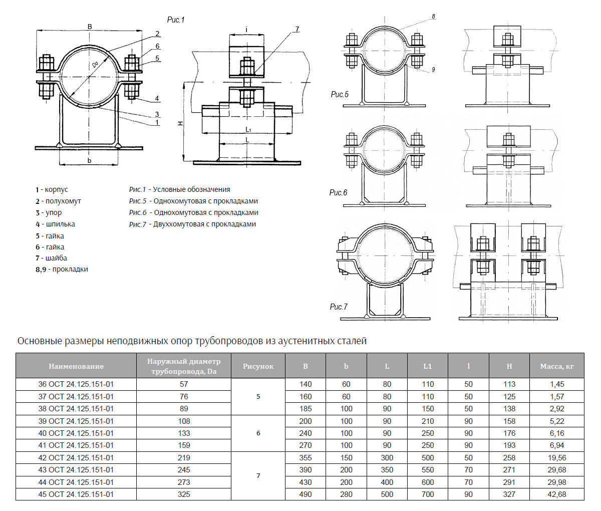 Опора Дн 89 38 ОСТ 24.125.151-01 неподвижная однохомутовая с прокладками