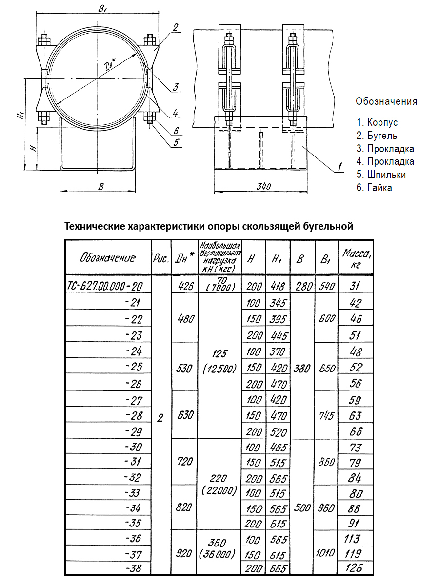 Опора Дн 920 ТС 627.00.000-036 серия 5.903-13 выпуск 8.95 скользящая бугельная