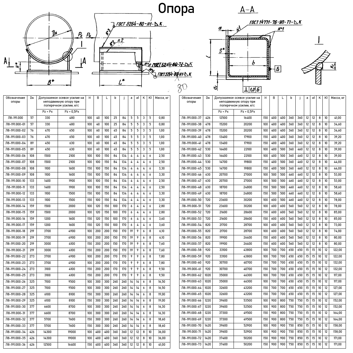 Опора Л8-191.000 неподвижная приварная