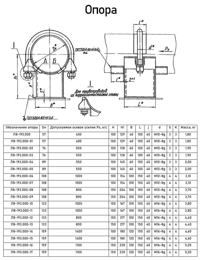 Опора Л8-193.000-04 хомутовая неподвижная