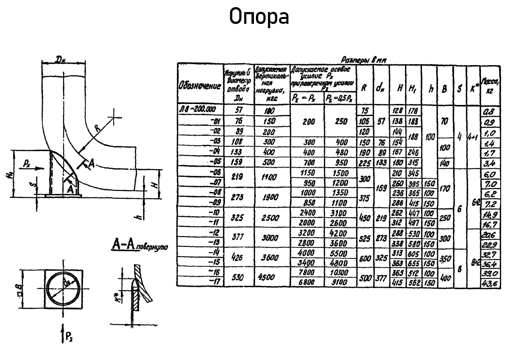 Опора Л8-200.000-02 трубчатая крутоизогнутых отводов